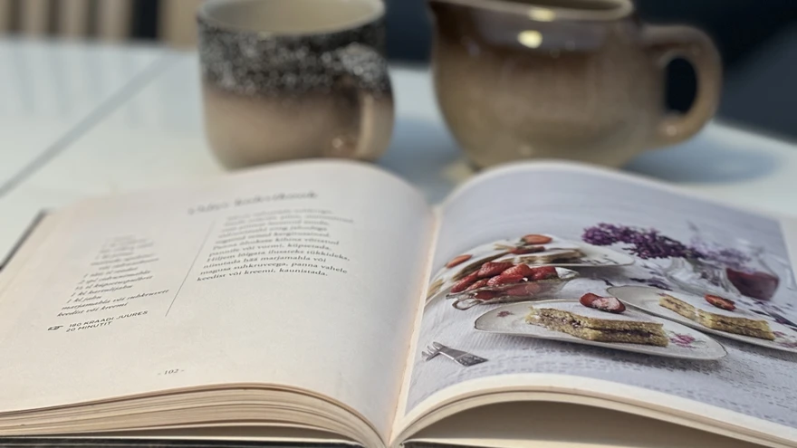 See kokaraamat sobib kogusse hästi, sest vanaema Hilda õppis söögitegemist 1930. aastatel populaarsetel kodumajanduskursustel, kus kõige suuremat tähelepanu pöörati justnimelt toidulaua rikastamisele, et toitumisharjumuste muutmise kaudu rahva kehalist ja vaimset arengut parandada. 1930ndatest on pärit ka Hilda räsitud ja kolletanud retseptivihik, millest nüüd on saanud raamat. Sealt leiate nii soolaseid kui ka magusaid ehtsaid talutoite. Pakume siinkohal valikuks ühe koogiretsepti. Tasub katsetada nii argi- kui ka pidupäeval.